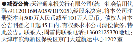 天津市减资公告_登报公示