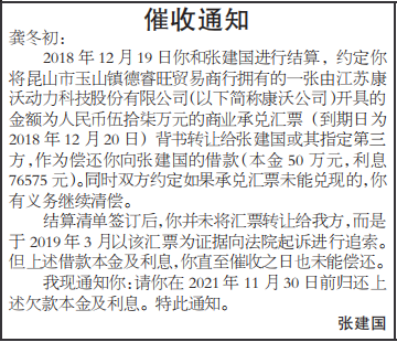 催收通知_声明公告_登报公示