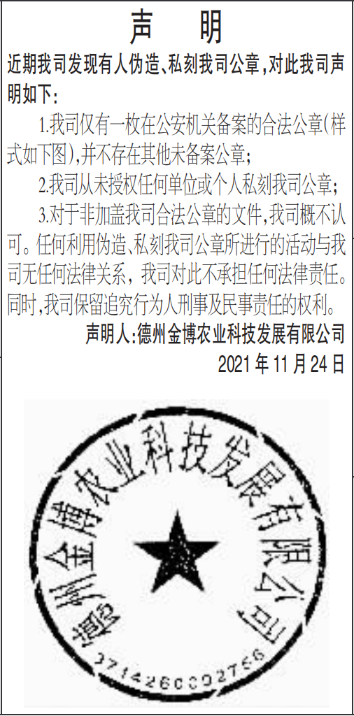 3.对于非加盖我司合法公章的文件,我司概不认可。任何利用伪造、私刻我司公章所进行的活动与我司无任何法律关系,我司对此不承担任何法律责任。同时,我司保留追究行为人刑事及民事责任的权利。