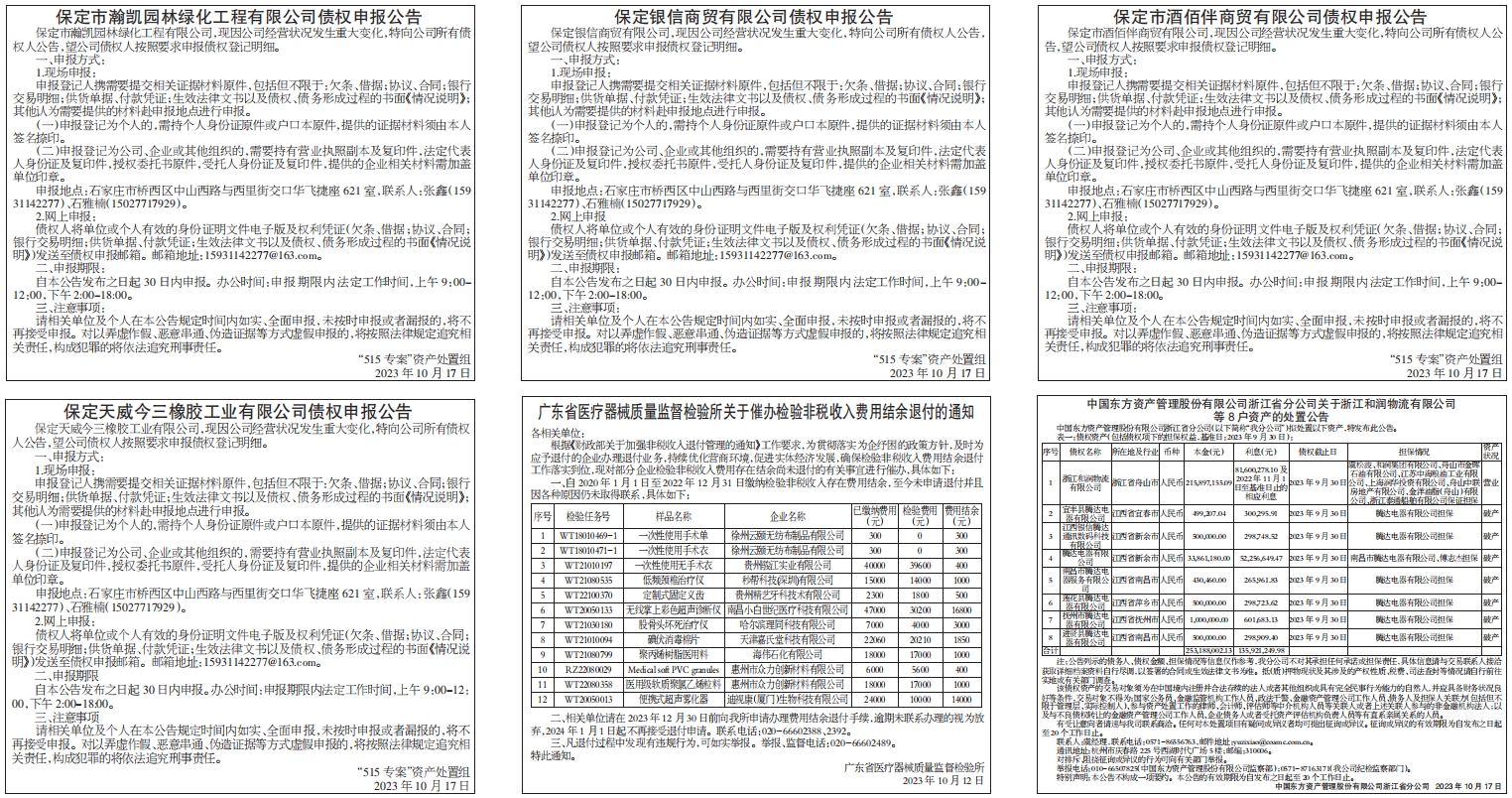 自本公告发布之日起30日内申报。办公时间:申报期限内法定工作时间,上午9:00-12:00,下午2:00-18:00。